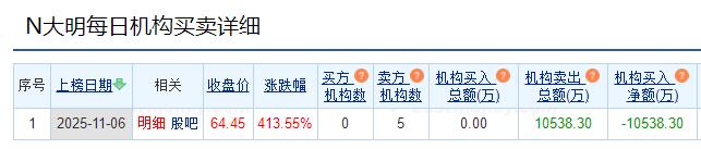 中国经济网北京11月6日讯:大明电子(603376.sh)今日在上交所主板挂牌上市。收盘报64.45元,涨幅413.55%,总市值257.8亿元。龙虎榜数据显示,德赛电子销量前五名的企业中,有5家机构独占席位。据统计,德赛电子今日卖出的机构席位净值为10538.3万元。