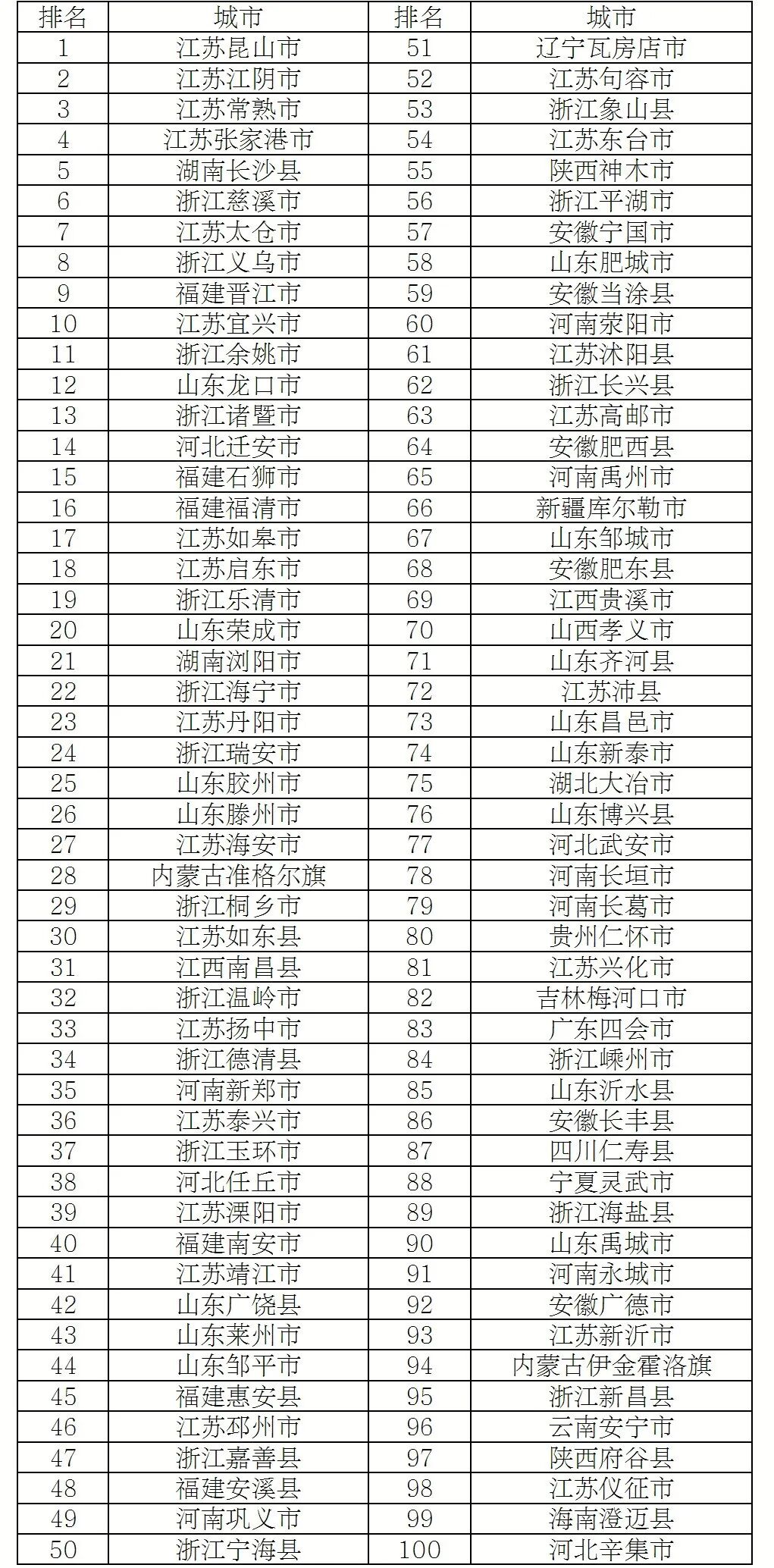 前100个县和城市贡献了全国GDP的20%以上!这是排名,您的城镇是哪一个?