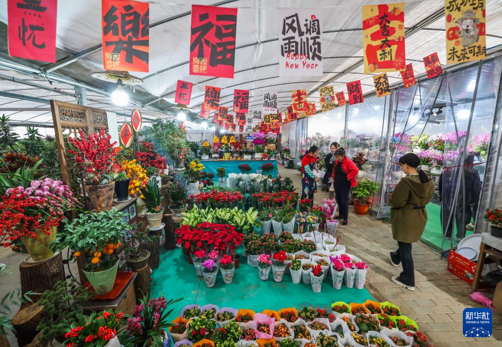 12月23日,顾客在绍兴花卉市场购买各种年花。年末,位于浙江省绍兴市柯桥区李渚镇的绍兴花卉市场进入年夜花销售旺季。市民和游客前来购买各种兰花、牡丹、红掌、大丽花、佛手盆景等。绍兴花卉市场占地1000公顷。是集展览销售、观光休闲、文化体验为一体的适合商务、旅游的综合性花卉市场。新华社记者 徐宇 摄